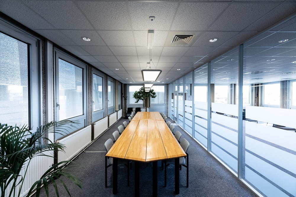 In één van de open kantoren zijn Panel Performance en Downlight UGR<19 armaturen geïnstalleerd. De vergaderruimte is gemoderniseerd met Downlight UGR<19 en Panel Direct/Indirect armaturen. Alle geïnstalleerde armaturen hebben een UGR<19 en Zigbee technologie. Er zijn al scenario’s gedefinieerd, zodat de gebruiker de lichtscènes volgens het eigen activiteitenplan (bijvoorbeeld een vergadering of presentatie) kan gebruiken.