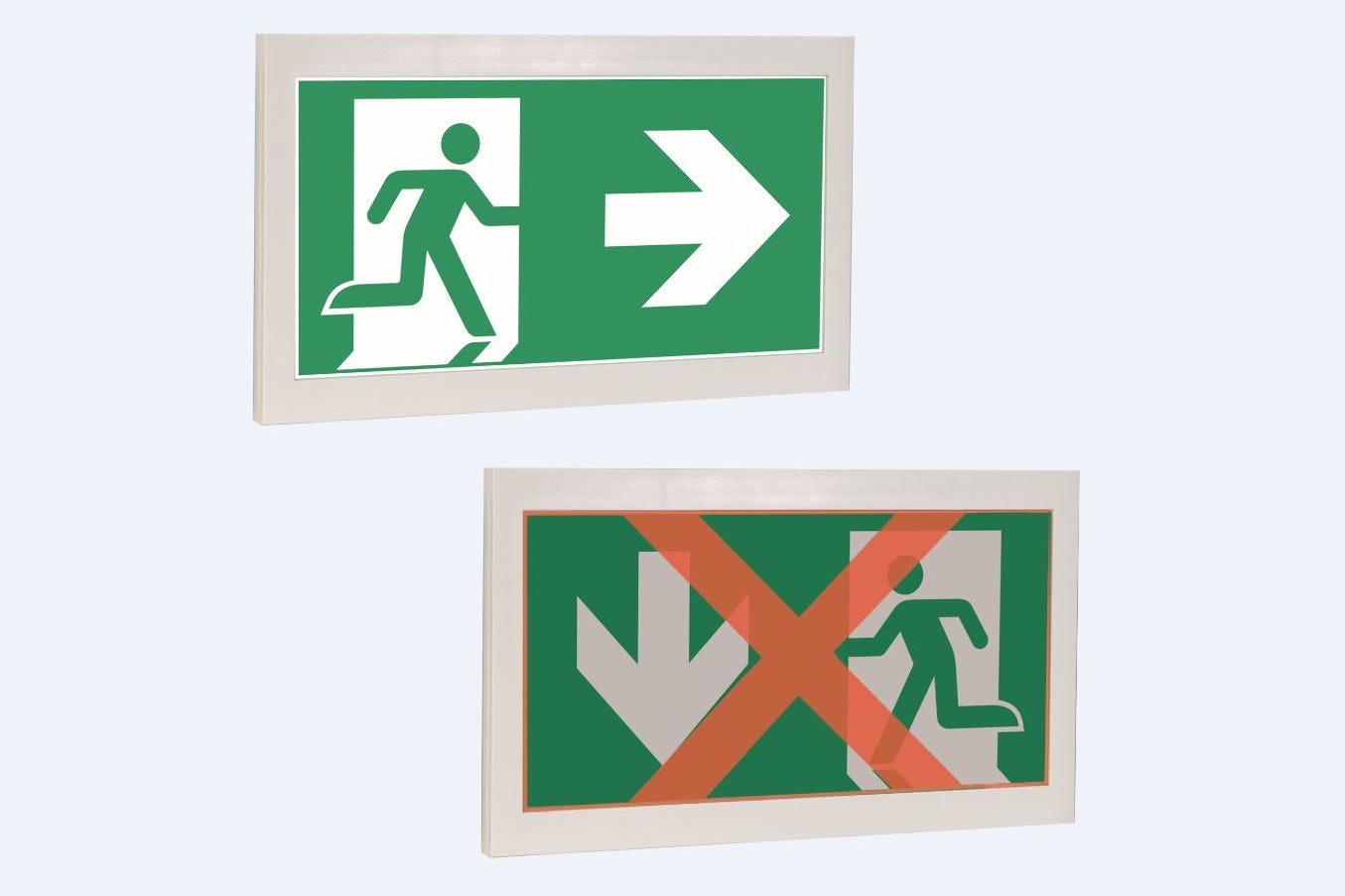 Bij adaptieve evacuatie worden mensen via nooduitgangsborden die van richting kunnen veranderen, naar de veiligste route gedirigeerd.