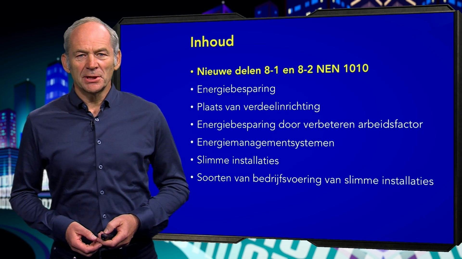 In deze kennisvideo licht Sjef Cobben de nieuwe delen van NEN 1010 toe. De belangrijkste onderdelen daarvan zijn energiebesparing en slimme installaties. Tevens gaat hij in op het beheersen van het gehele proces, andere manieren van energiebesparing en presenteert hij een heldere set aan conclusies.