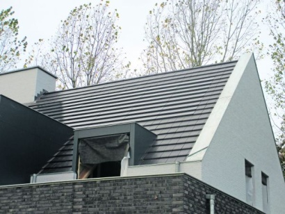 Een nieuwbouwvilla in Best heeft de Nederlandse primeur van verdekte zonnepanelen in het dak. Ralf Klop van adviseur Groene Groei uit Best vond de panelen in Groot-Brittannië. "In Nederland waren ze niet te krijgen."