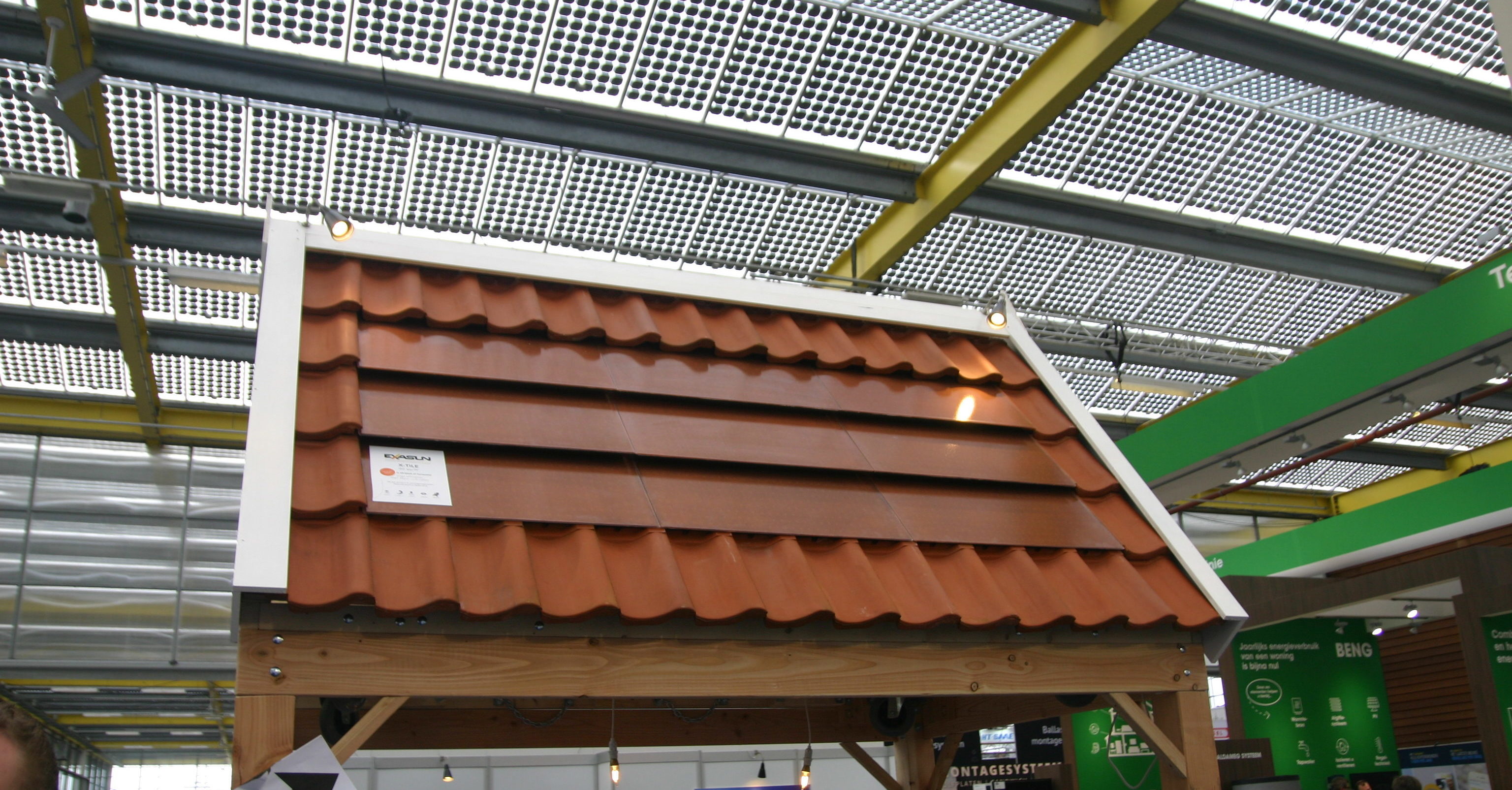 De eerste zonnepanelen in een kleurtje zijn te koop. Op de vakbeurs Solar Solutions toonden twee bedrijven zonnepanelen in oranje dakpankleur.