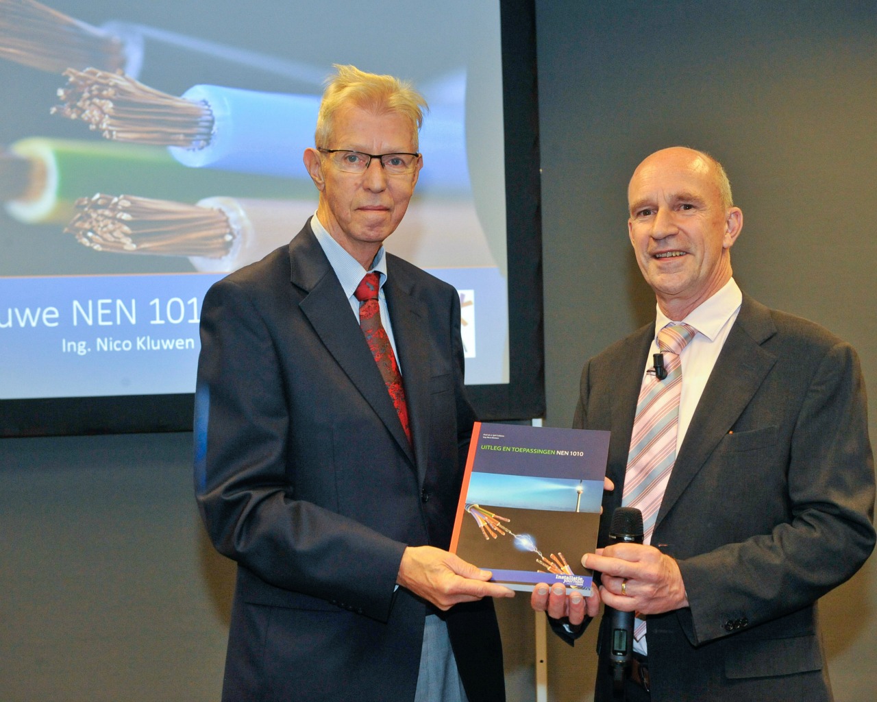 Lang verwacht, al veel besproken, maar nu een feit. De nieuwe NEN1010:2015 is op de beurs Elektrotechniek officieel gepresenteerd. Voorzitter Titia Siertsema van brancheorganisatie Uneto-VNI kreeg het eerste dikke exemplaar overhandigd.