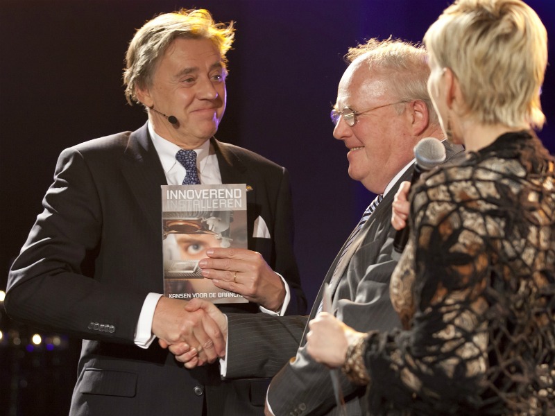 Uneto-VNI voorzitter Marcel Engels reikte tijdens de VSK het eerste exemplaar van 'Innoverend Installeren' uit aan Ed Nijpels, voorzitter van NL Ingenieurs. Dit boek bevat basiskennis over het innovatieproces en en geeft installateurs praktische tips om zelf met innovatie aan de slag te gaan.
