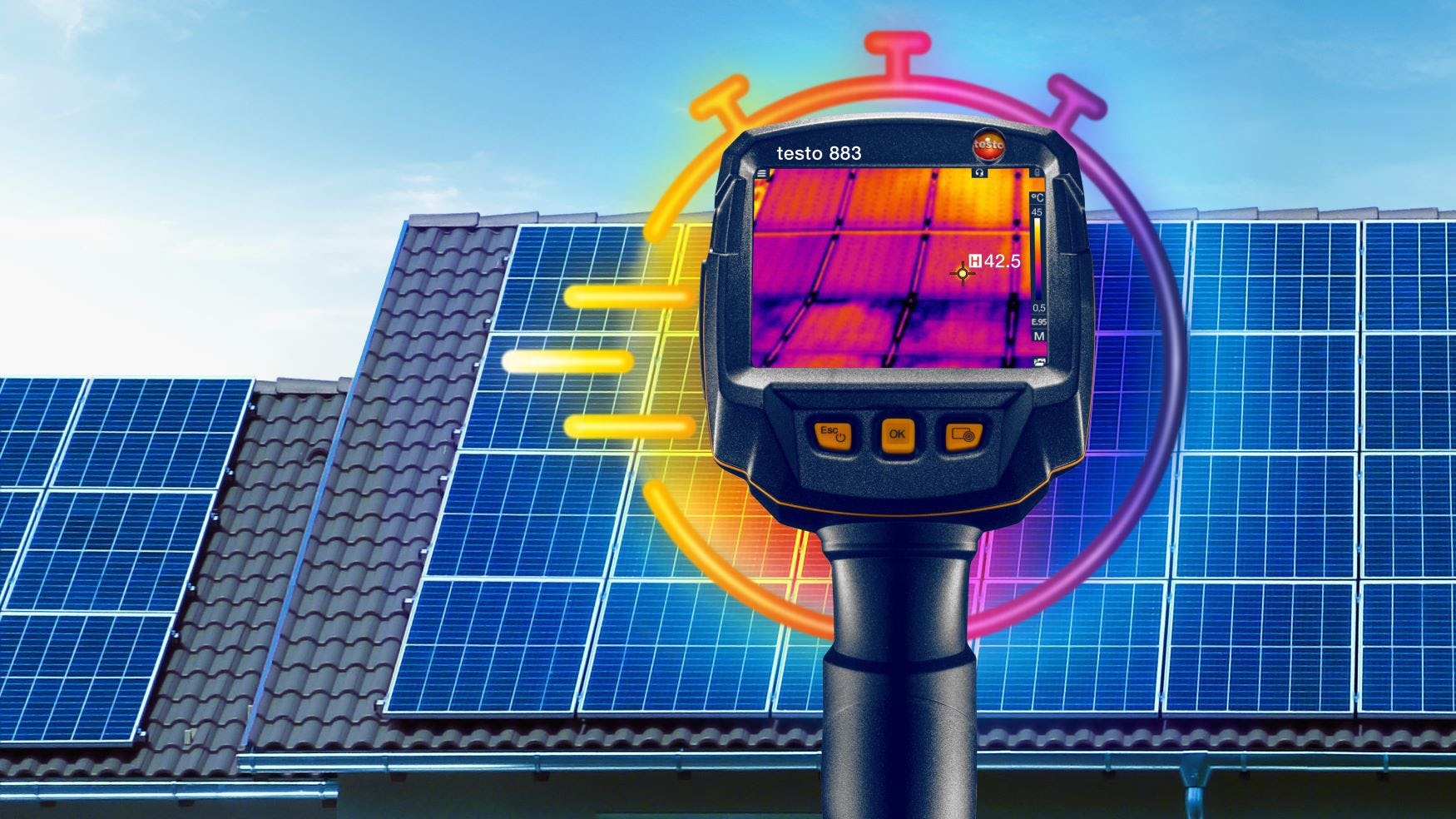 Bij een thermografische meting is de hoek van de camera tot het pv-paneel bepalend. In de praktijkgids van Testo wordt dit verder uitgelegd.