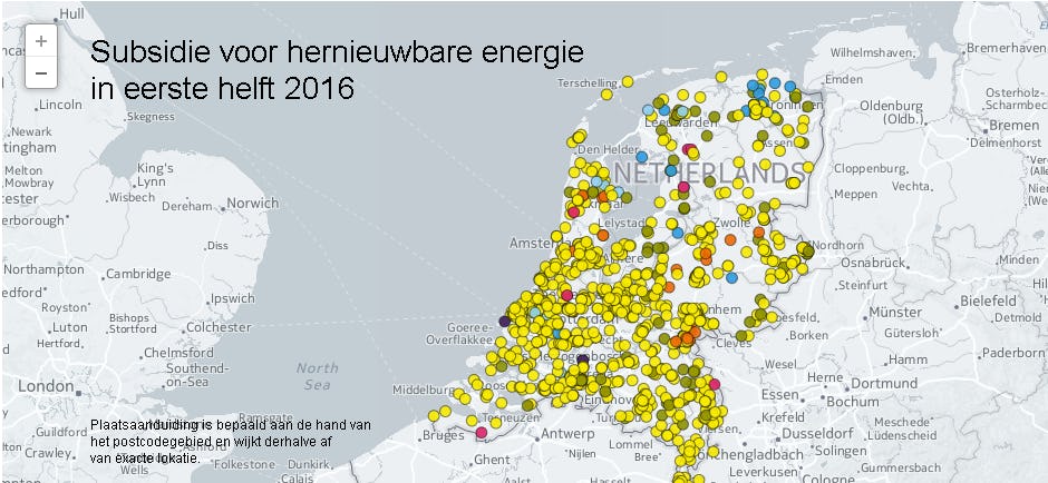 In de eerste helft van dit jaar is voor 4 miljard euro subsidie verstrekt aan projecten met zonne-energie, biomassa, geothermie en windenergie, meldt RVO.nl. In bijna 90 procent van de gesubsidieerde projecten wordt zonne-energie toegepast.