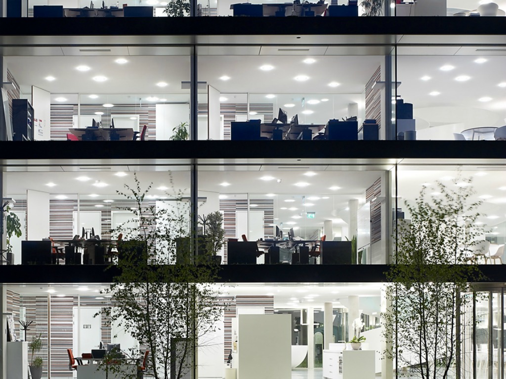 Arpalight Projectverlichting ontwikkelde een lichtplan voor het nieuwe pand van automatiseringsbedrijf Sigmax in Enschede. De afstemming van 'licht op lucht' bleek hierbij de grootste uitdaging.