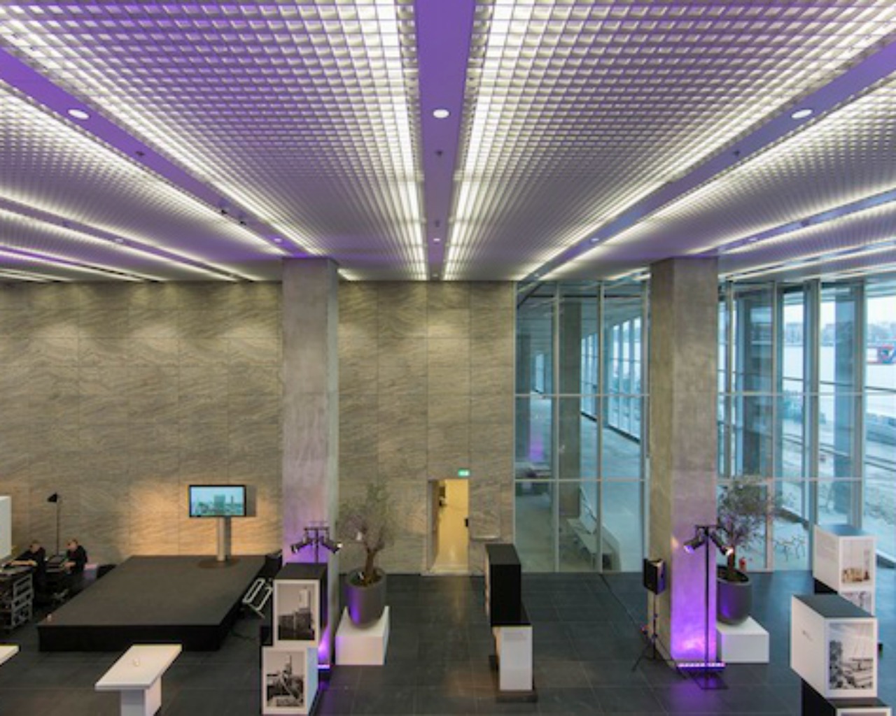 Hunter Douglas ontwikkelde voor De Rotterdam een plafond met geïntegreerde verlichting. De Rotterdam is het grootste multifunctionele gebouw van Nederland (162.000 m2).
