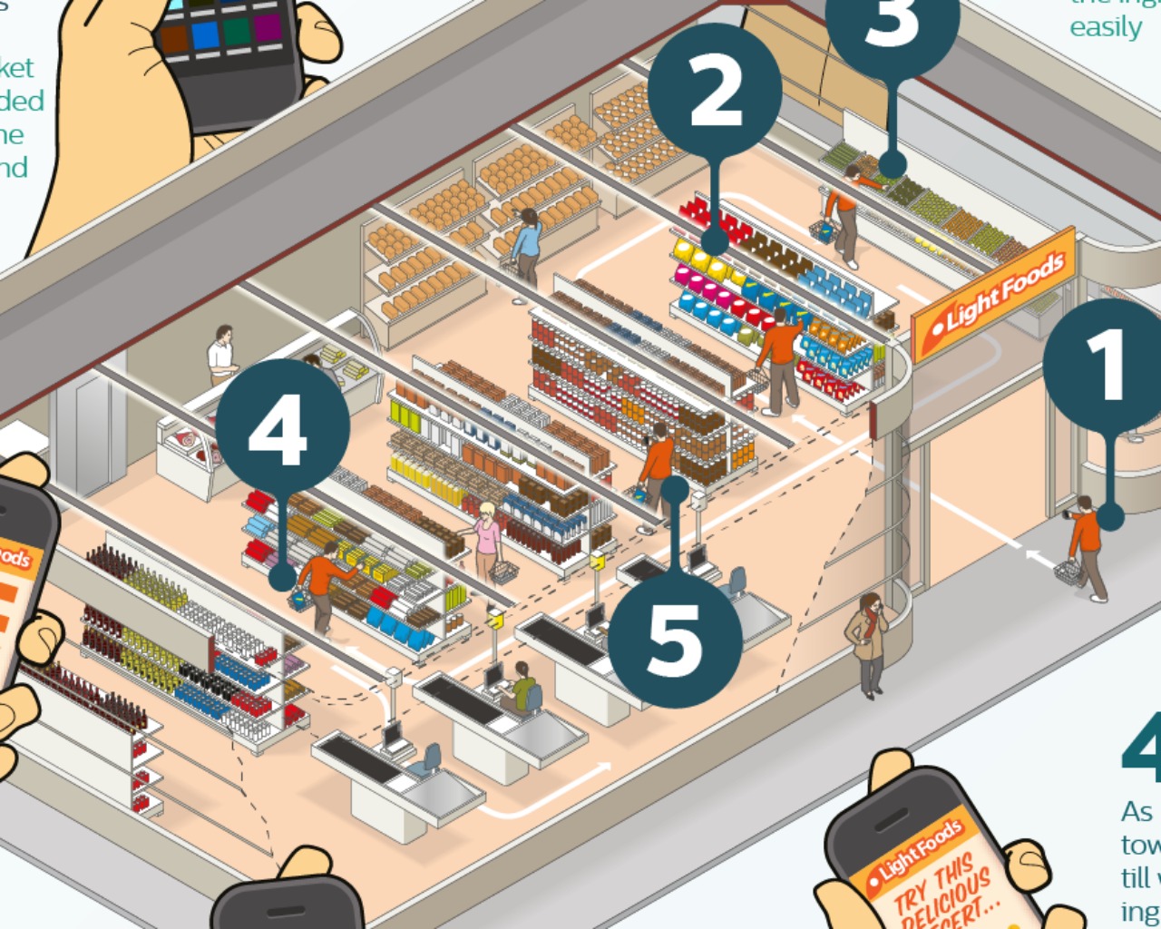 Philips test bij retailers een op verlichting gebaseerd intelligent 'indoor-GPS-systeem' . Het systeem gebruikt de verlichtingsinfrastructuur van de winkel om via een smartphone app, locatie-gebaseerde informatie aan de winkelende klant door te geven.