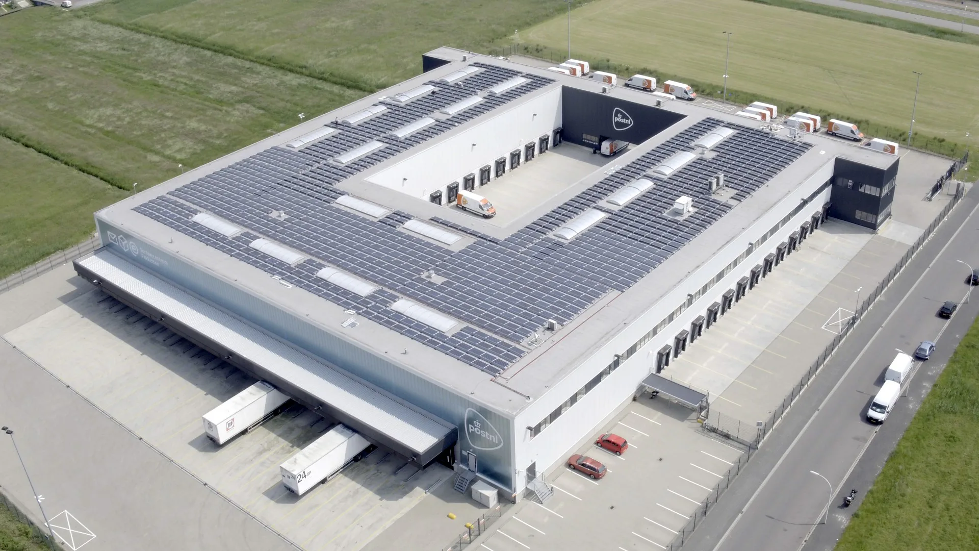 Eneco plaatst 22.000 zonnepanelen op de daken van 19 pakkettensorteercentra van PostNL. Gisteren werd de eerste installatie op het sorteercentrum in Den Hoorn in werking gesteld.