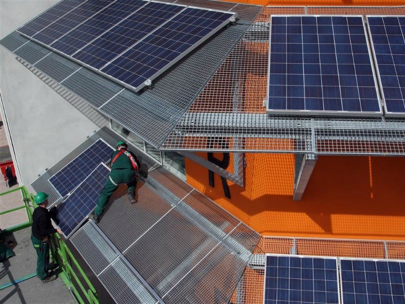 Op de nieuwe gemeentewerf van Tiel doen de zonnepanelen ook dienst als zonwering. RTP Elektrotechniek uit Druten zorgde voor de installatie.