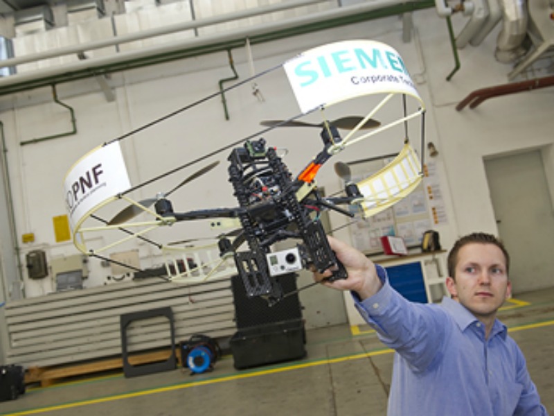Siemens gebruikt een met sensoren uitgeruste minihelikopter voor het verzamelen en interpreteren van videobeelden. De quadrocopter kan op basis van de verzamelde data een digitaal 3D-model creëren.