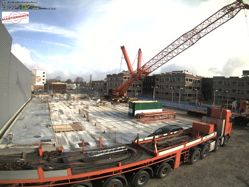 Met intelligente camera's op bouwkeet en bouwkraan volgt Bouwbedrijf PMeijer de bouw van 75 appartementen in Hoofddorp. Directie, werkvoorbereiders en opdrachtgever kunnen zo vanuit hun kantoor de voortgang zien.