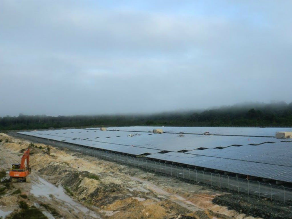 Op het terrein van een Surinaamse goudmijn leveren bijna 17.000 zonnepanelen een vermogen van 5 MW aan zonnestroom.