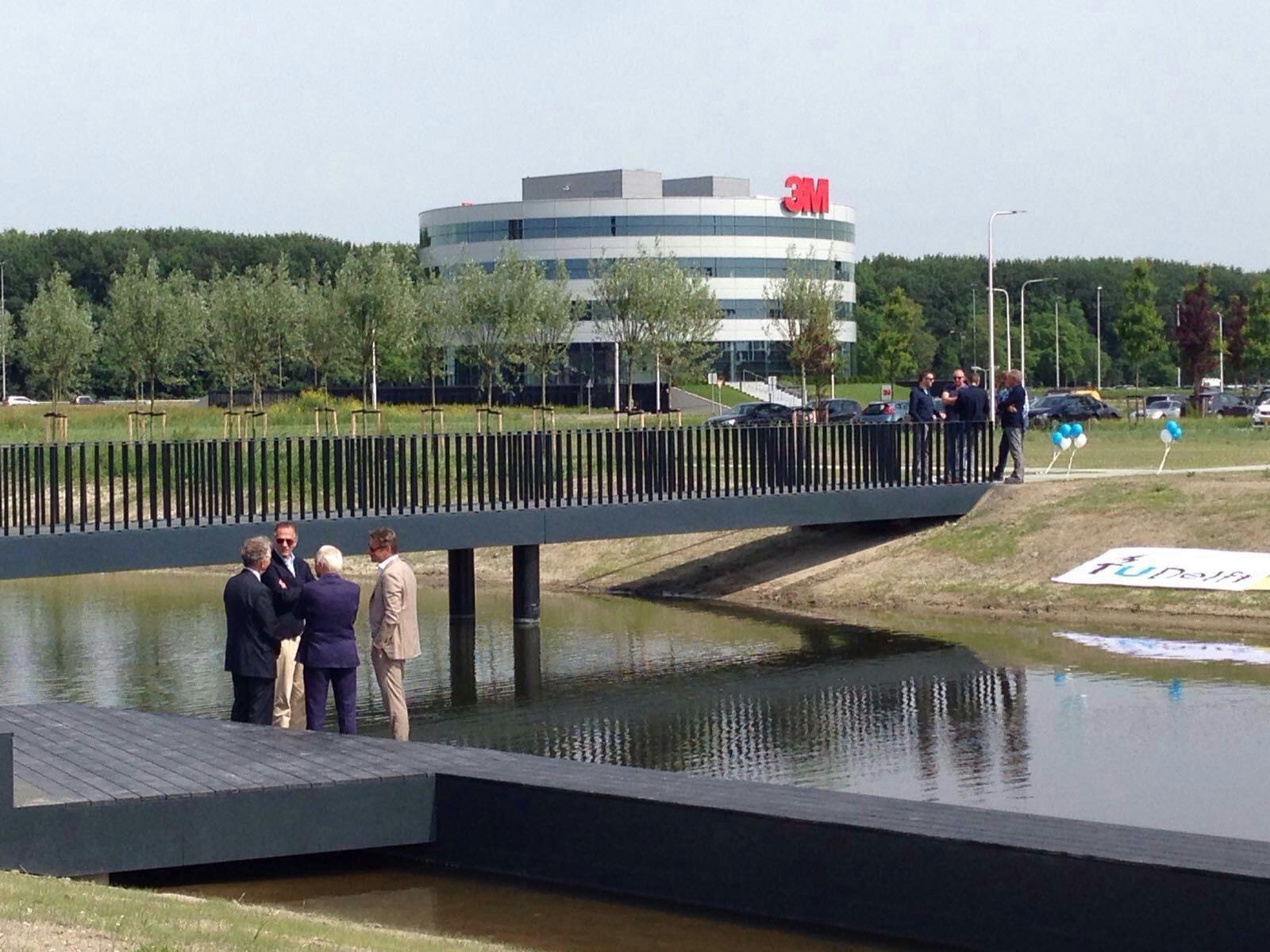 Vijf bruggen vol sensoren heeft Mocs neergelegd op Technopolis op de TU Delft. De vezelversterkte kunststof constructies geven continu hun actuele toestand door.